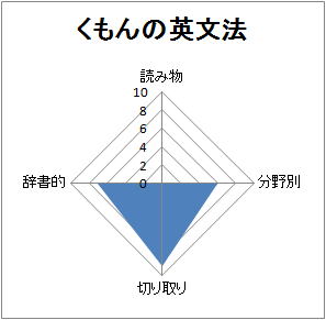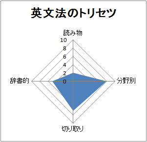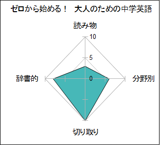 なお、通常、英語の参考書は、上記の4つの性質のうち、複数の性質を持つため、完全に分類できるわけではありません。そこで、わかりやすいように、レーダー図を使って分析していきます。